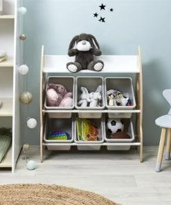 Toilinux Boîtes Et Paniers De Rangements Enfant Meuble De Rangement 6 Bacs Et 1 étagère Beige